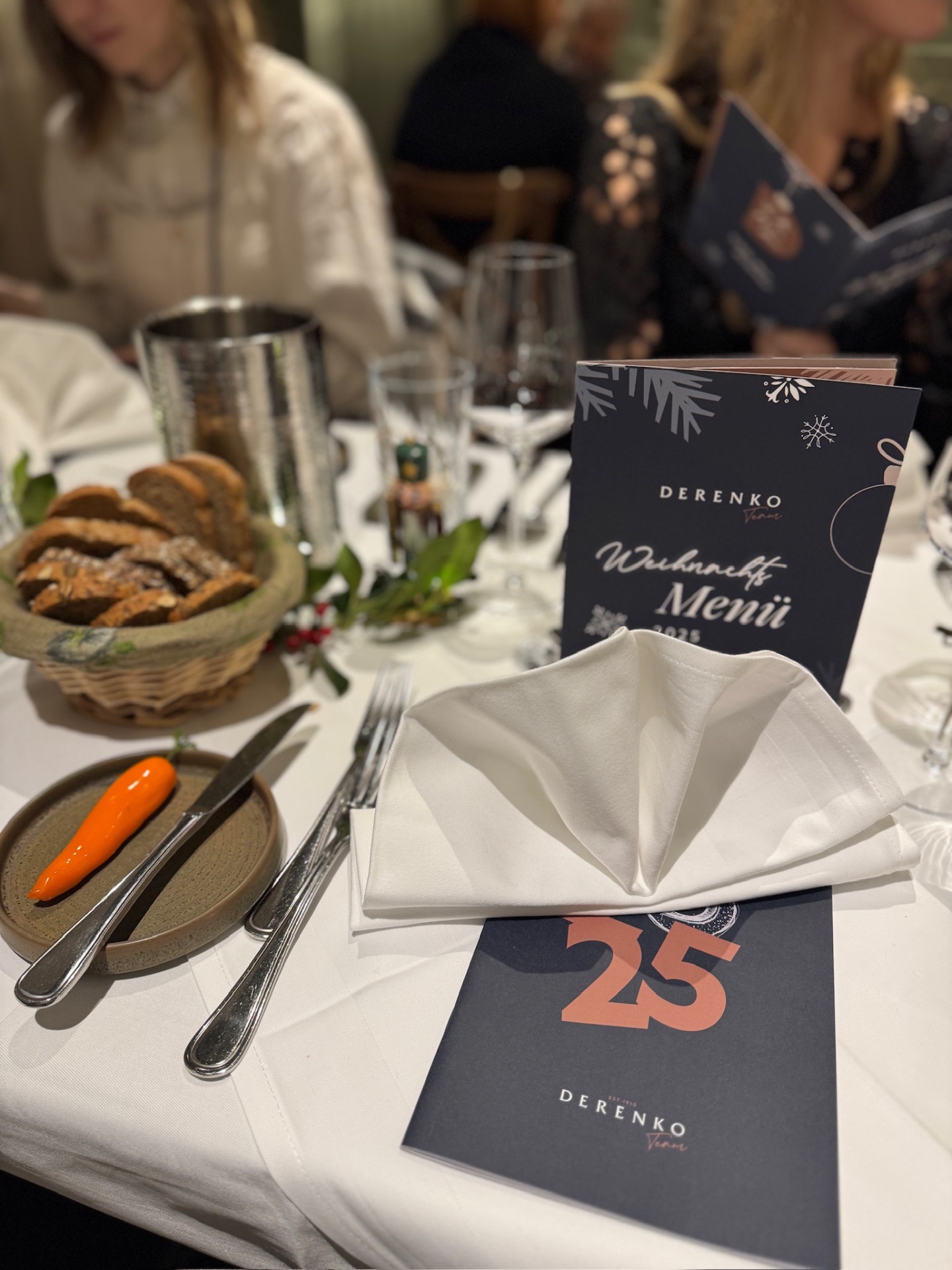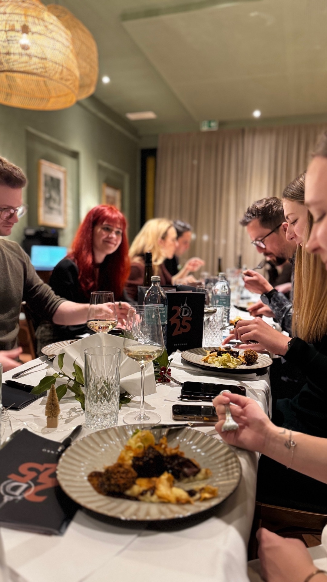 Die Weihnachtszeit ist für uns jedes Jahr ein guter Moment, um inne zu halten und gemeinsam Zeit zu verbringen. Auch 2025 haben wir den Jahresabschluss genutzt, um abseits des Arbeitsalltags zusammenzukommen. Gestartet haben wir in unserem Loft, wo wir uns bei einem ersten Glas Apertitiv austauschten und den Abend angenehm beginnen ließen.