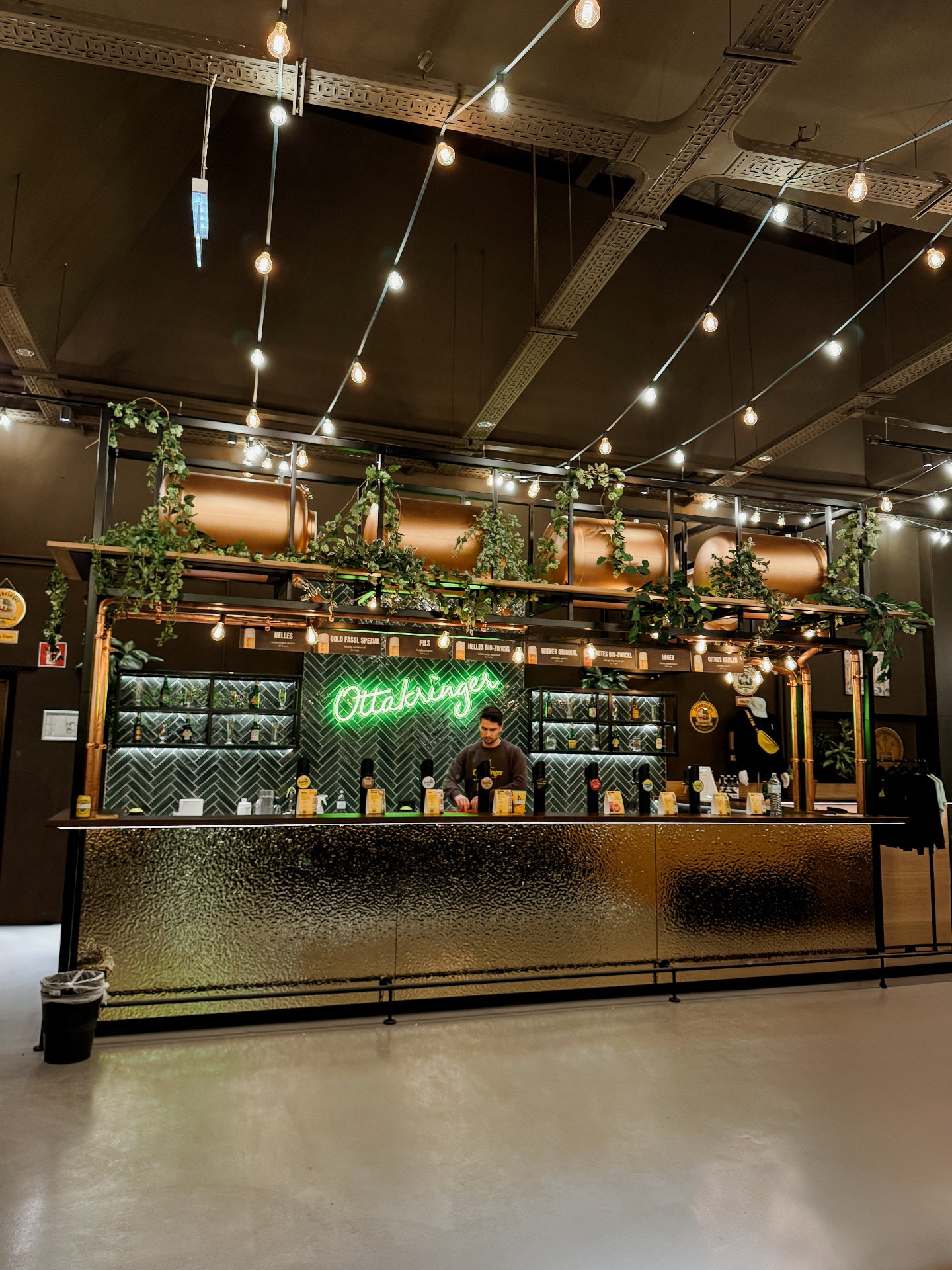 Ein besonderer Moment für uns war der Aufenthalt an der Bar im Ottakringer Shop, an der die Verkostungen stattfinden und die wir bei Derenko gestalten durften. Der Raum übersetzt den industriellen Charakter der Brauerei in eine klare, einladende Atmosphäre, die funktional ist und gleichzeitig emotional wirkt.