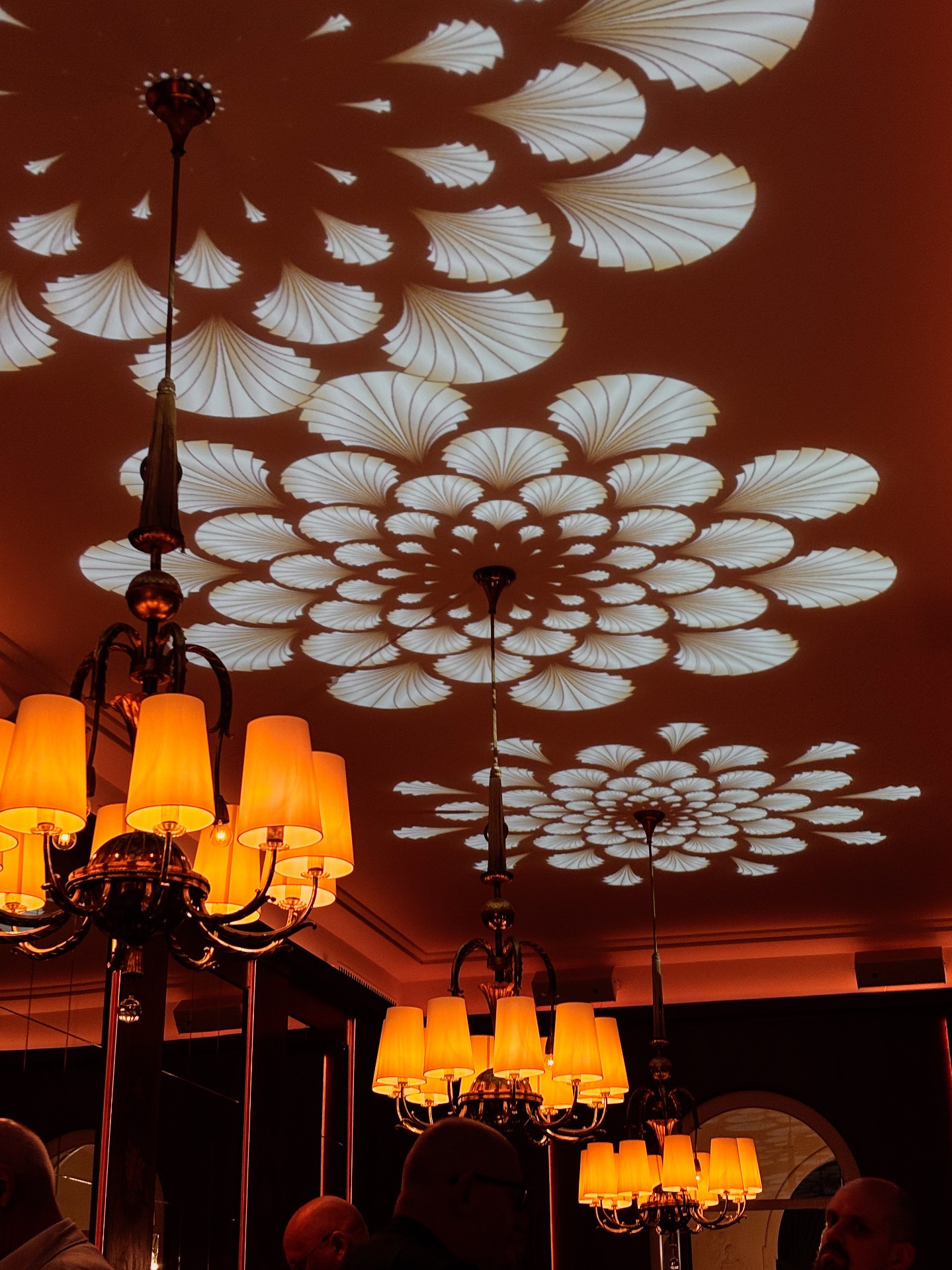 Der Künstler und Bühnenbildner Christof Cremer setzte sich intensiv mit der historischen Gestaltung des Saals auseinander – insbesondere mit jener Phase zwischen Jugendstil und Art Déco, in der der Raum ursprünglich entworfen wurde. Auf dieser Grundlage entstand gemeinsam mit einem Motion-Graphics-Studio ein visuelles System:3,6 Terabyte an Material für eine rund 25 Meter lange Decke. Was bedeutet das? Wer einmal kommt, sieht eine Version der Deckeninszenierung. Wer dreimal kommt, erlebt eine andere Version.