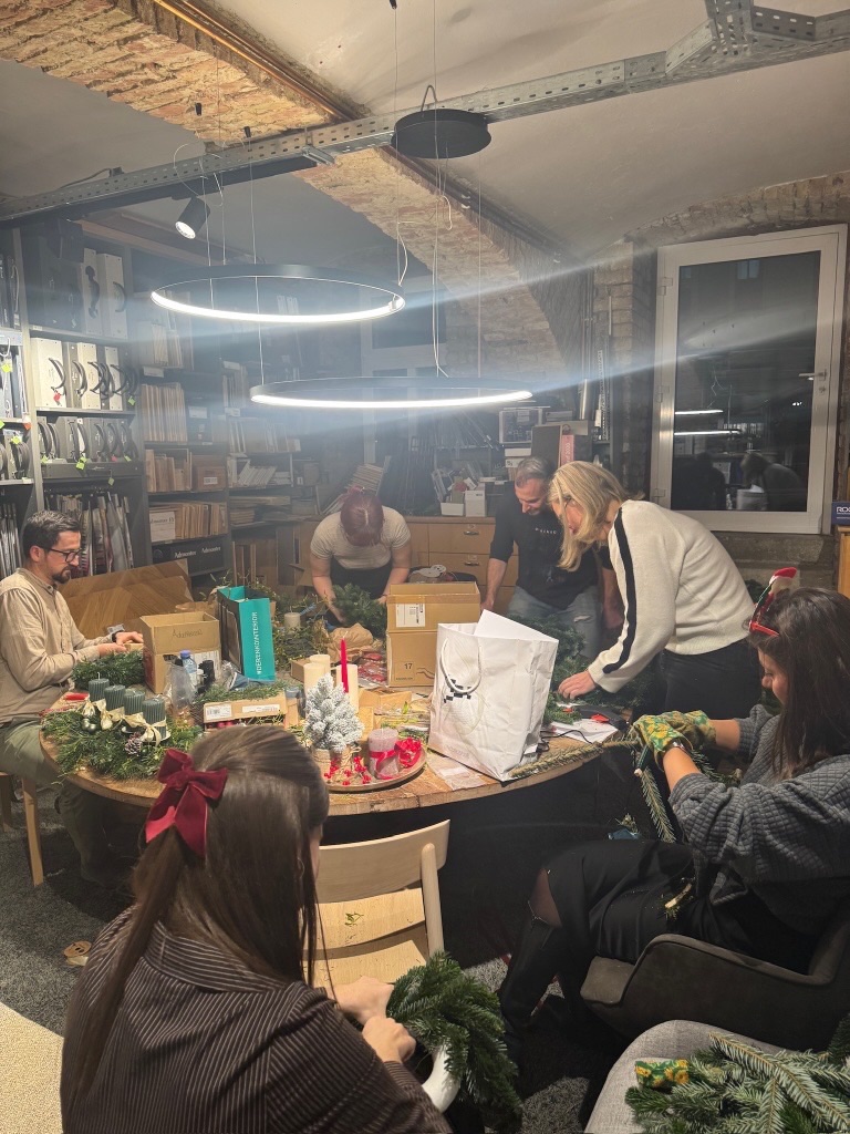 Wenn der Duft von Glühwein durch unser Büro zieht, Lichterketten flackern und überall kleine Häufchen Tannengrün liegen, dann wissen wir: Es ist wieder Zeit für eine unserer liebsten Traditionen – das Derenko Adventkranz-Basteln und Christbaum-Schmücken.